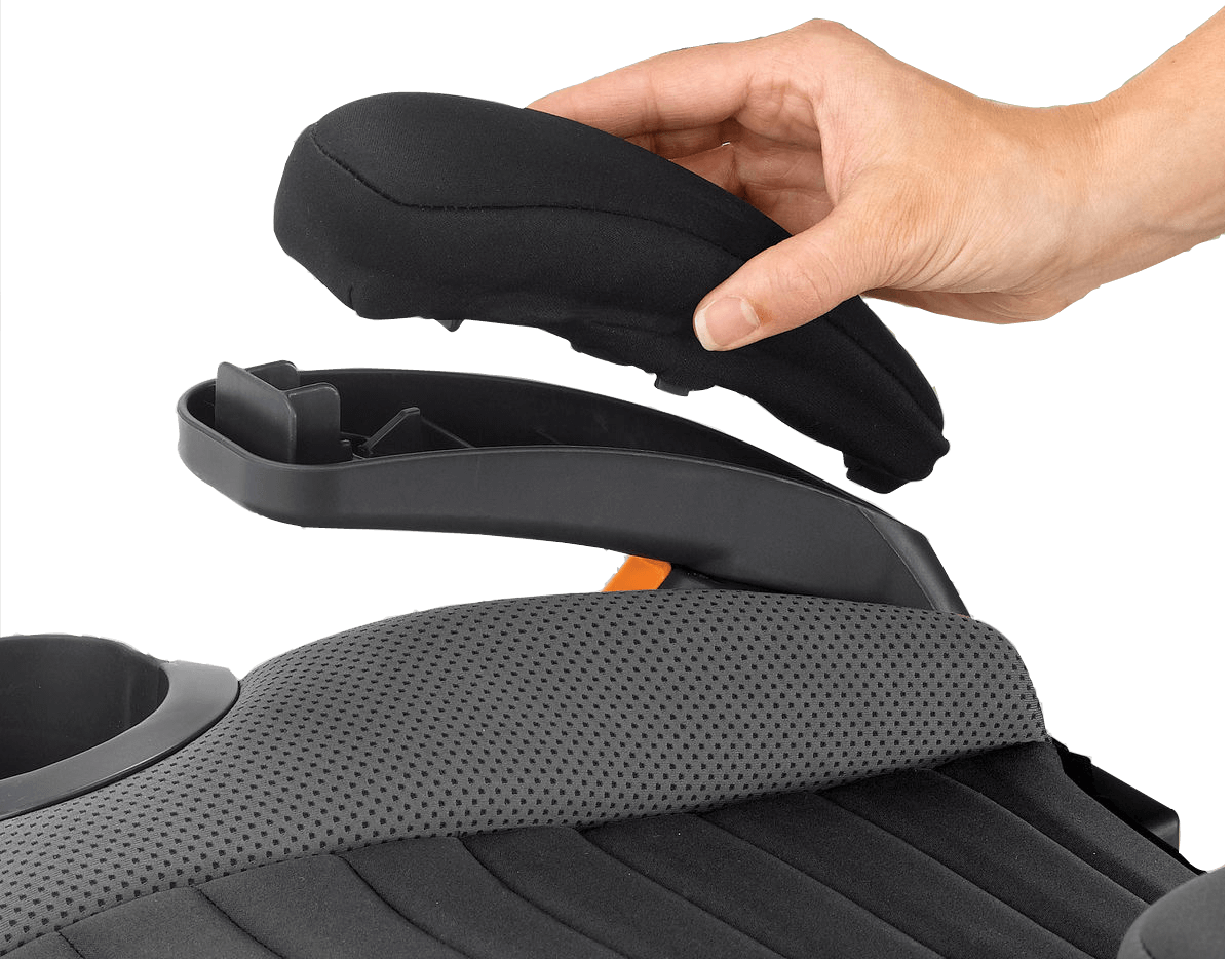 The GoFit? Backless Booster is designed for big kid comfort with a contoured ErgoBoost? seat and double foam padding that provide support in all the right places. Two soft-sided cup holders easily flex and fold out of the way to save space. For parent convenience, the cup holders are easy to remove and dishwasher-safe. All fabrics are also removable and machine-washable, including the pop-out arm rest covers. Integrated lap belt guides and a shoulder belt clip make it easy to position the vehicle seatbelt for proper use. A built-in carry handle makes it easy to transfer from vehicle to vehicle, and a smooth underside helps protect vehicle seats from damage. This product conforms to Federal Motor Vehicle Safety Standard 213.