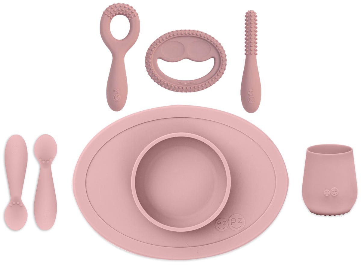EZPZ Infant Bundle - First Foods Set + Oral Development Tools - Blush