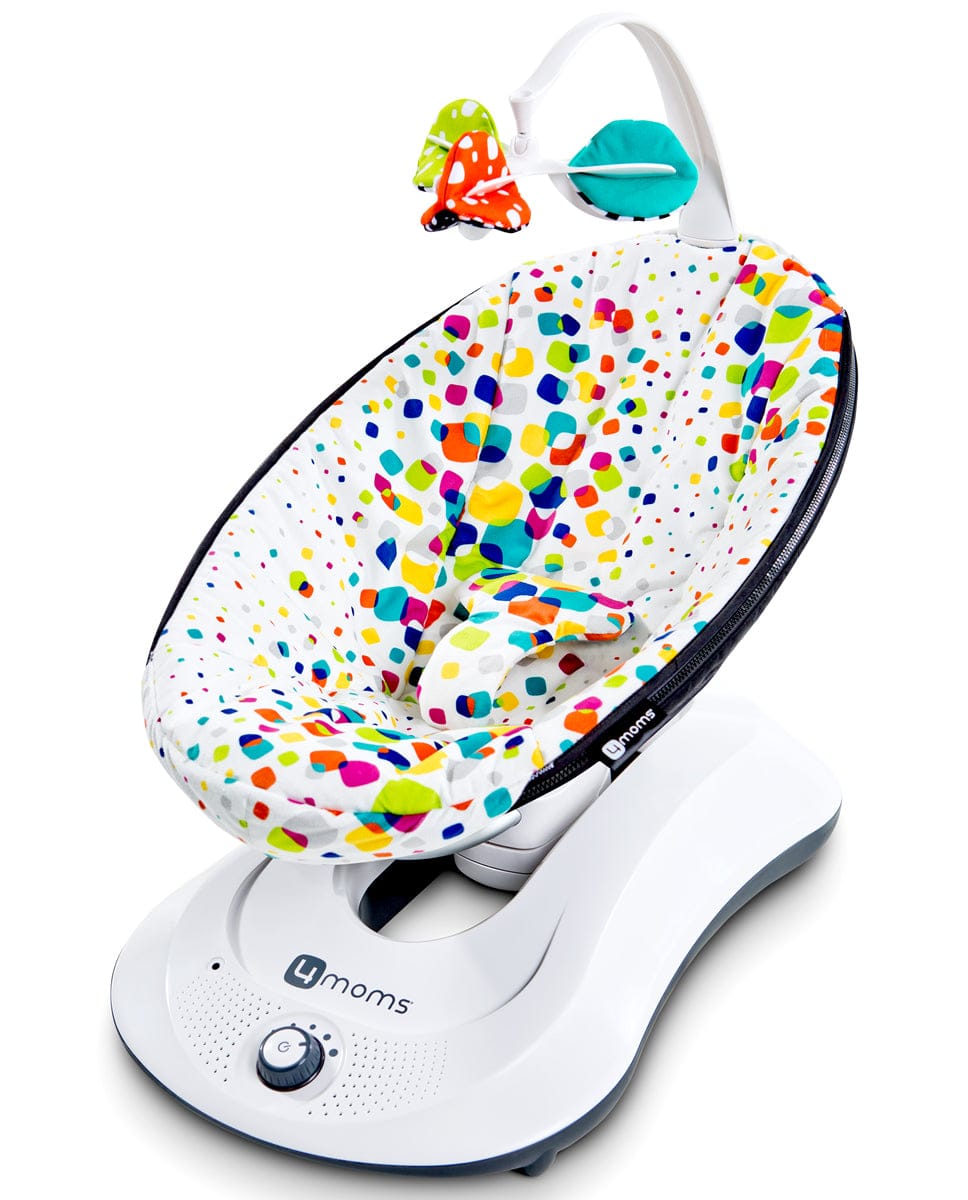 Why swing when you can rock? The 4moms rockaRoo infant seat flips the traditional swing on its head? literally ? with the pivot at the base. It moves like a rocking horse to maximize a baby’s sensation of motion. At 70 percent smaller than a typical swing, it also is significantly less clutter. It features five speeds, a mp3 hookup and reversible toy balls. Babies like variety of motion and 4moms has now given parents more options, from the natural bouncing and swaying motions of the mamaRoo to the rocking motion of the rockaRoo.