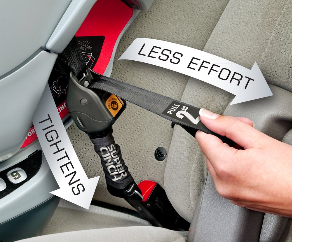 SuperCinch? LATCH tightener with force-multiplying technology helps achieve a tight and secure fit.
