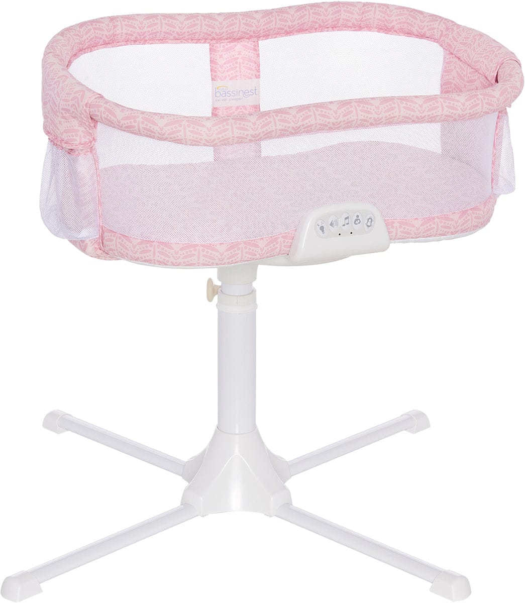 The HALO? Bassinest? Swivel Sleeper is the only bassinet that rotates 360 degrees for the ultimate in convenience and safety. Now your little one can sleep as close as you like, while still safely in his own separate sleep area, reducing the risks associated with bed-sharing. In addition to bringing baby close, it swivels to make getting in and out of bed hassle-free. Its unique design means baby is visible at your eye level, allowing you to soothe your baby quickly, while mesh walls provide maximum breathability. In addition, its patented side wall lowers and returns automatically, allowing you to tend to your baby while still in bed ? ideal for all mothers (especially those recovering from C-sections). Its stable, adjustable base fits next to almost any bed. Also includes a soothing nightlight, sounds, music, vibration and nursing wake-up button.