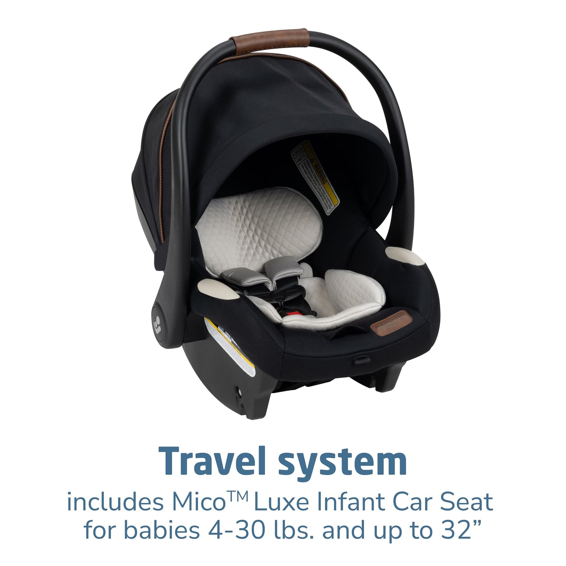 The ZeliaTM2 Luxe 5-in-1 Modular Travel System is designed to help you stroll into parenthood with ease. So versatile, you can step out with your baby from day 1 and be prepared to journey through years of adventures together. Transition smoothly between 5 modes: switches easily between parent-facing car seat caddy, reversible carriage, and reversible stroller. The included lightweight Mico Luxe Infant Car Seat is made for safety plus coziness for your baby with Side Impact Protection (SIP), removable plush infant inserts, and premium PureCosi™ fabrics that keep your little one comfy, yet can be removed quickly without the need to rethread the harness when it’s time to machine wash and dry them. Vegan-leather accents on the stroller and car seat add style and comfort.