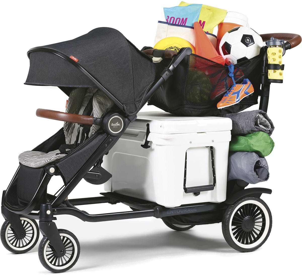 The Entourage stroller features over 30 configurations to fit your family and lifestyle.