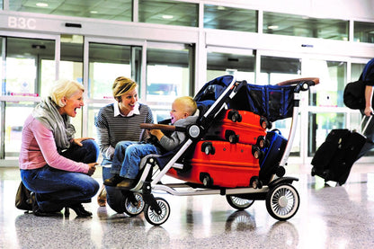 The Entourage stroller can take up to 150lbs of kids and cargo, perfect for shopping trips and family outings!