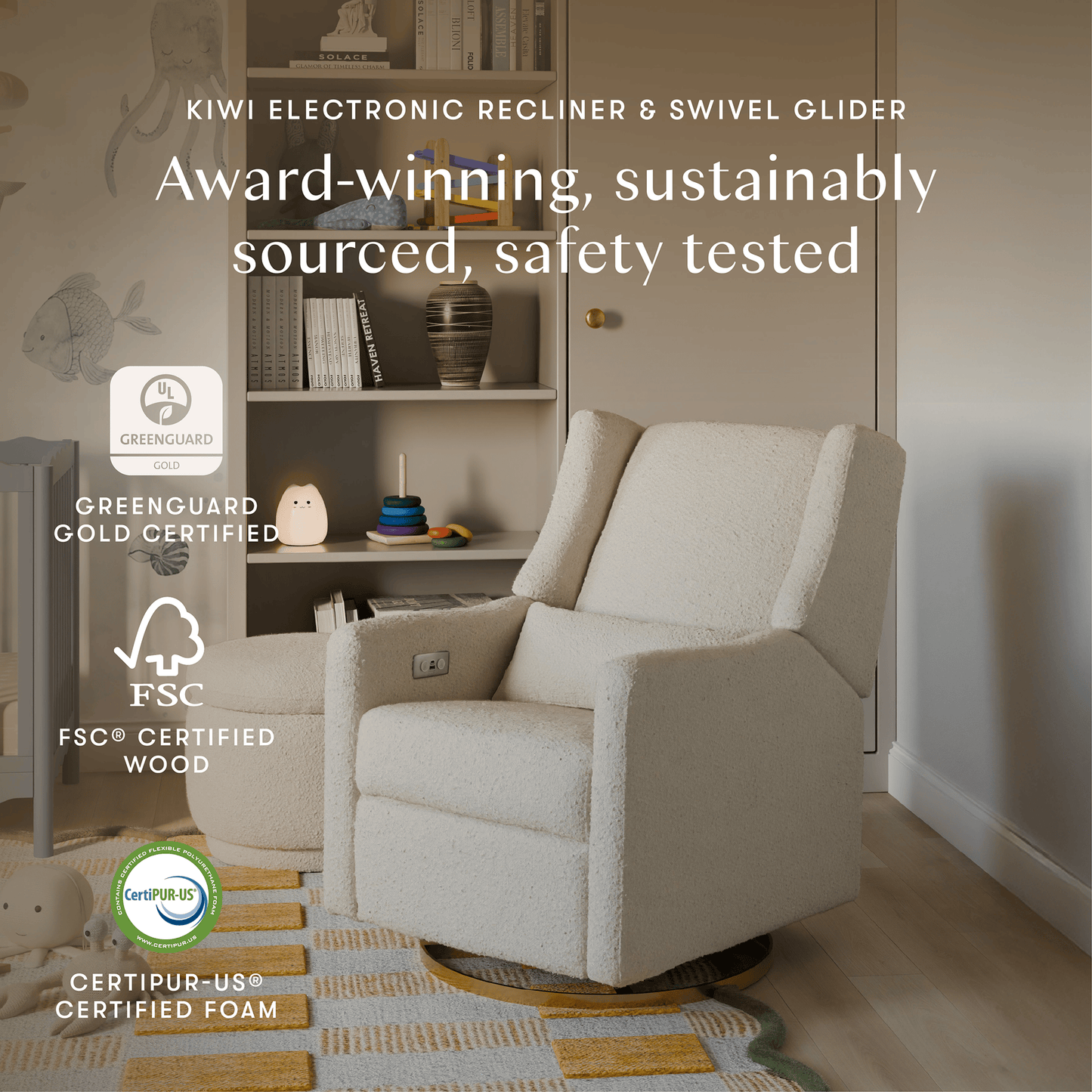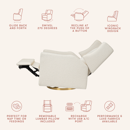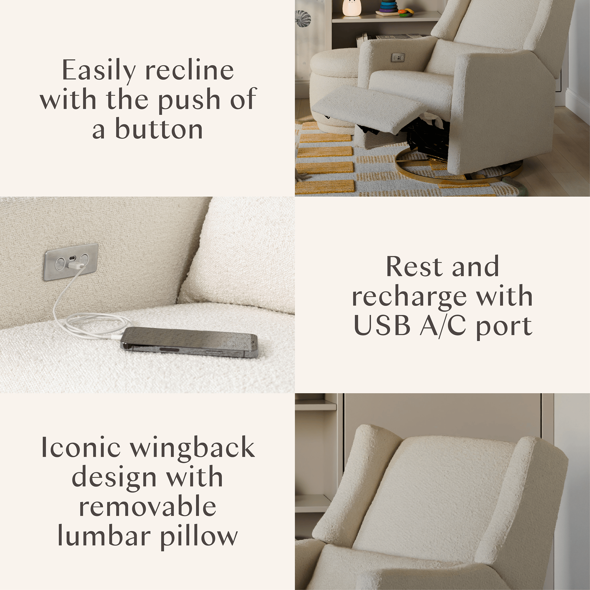 Babyletto Kiwi Electronic Glider Recliner w/ USB - Ivory Boucle w/ Gold Base