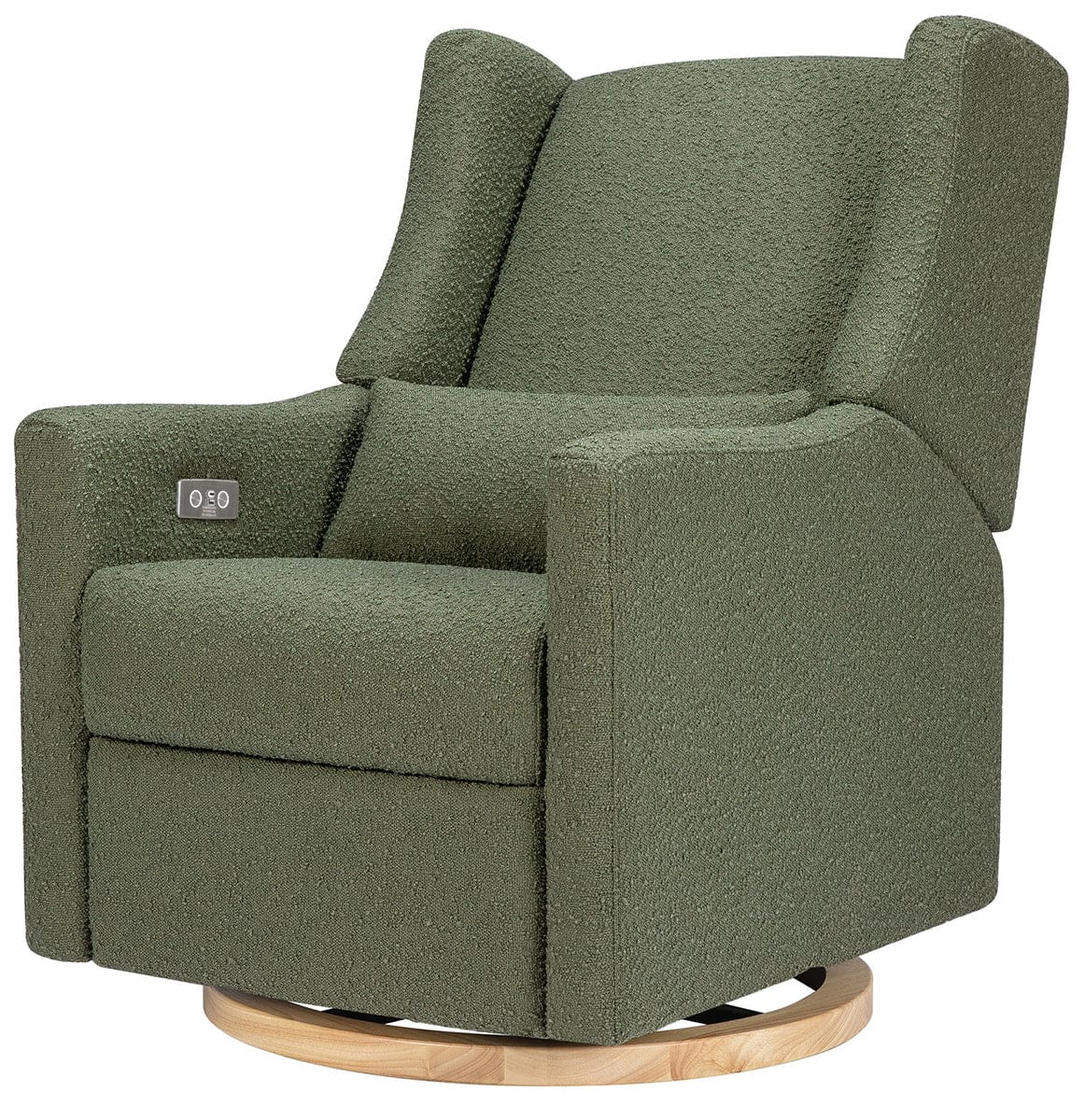 Babyletto Kiwi Electronic Glider Recliner w/ USB - Olive Boucle w/ Light Wood Base