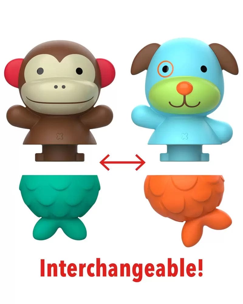 Switch it up at tub time with our cute mix & match mermaids. Designed to twist apart, the mermaid tails are interchangeable for extra fun! Each two-piece bath toy is also easy to clean and floats in water. Soak up the fun with our full line of ZOO® baby and toddler bath toys.
