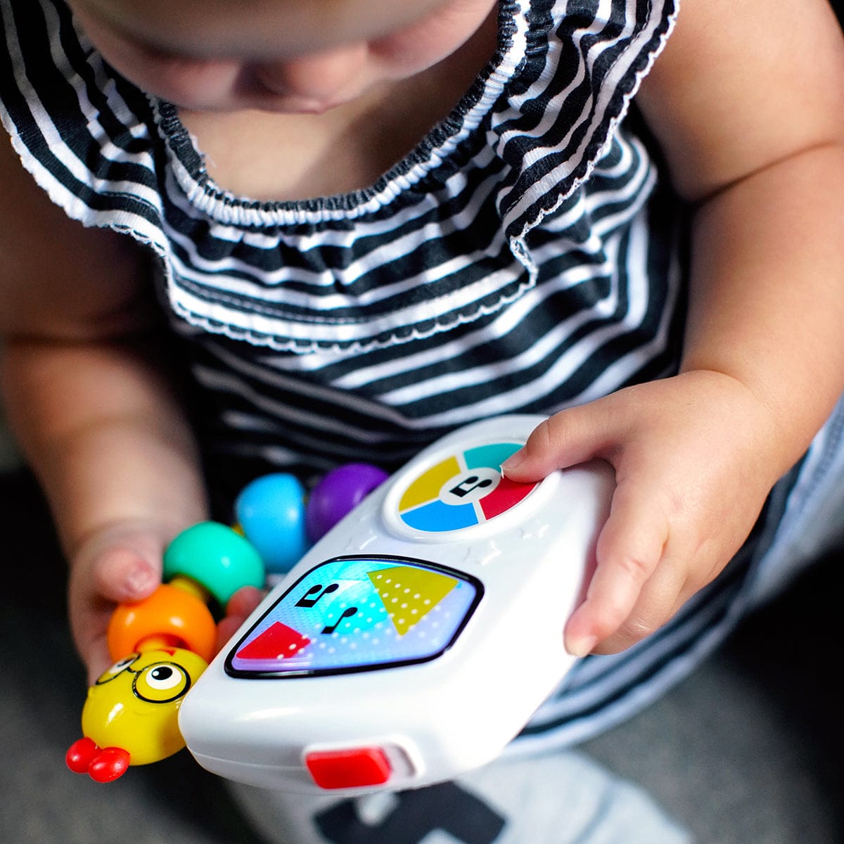 The award winning Baby Einstein™ Take Along Tunes Musical toy is made for little maestros. This easy to grasp, on the go toy is your little musician’s opening act and will quickly become a favorite. It’s important to give your baby toys that play music to foster music appreciation at a young age. With the Take Along Tunes musical toy, babies can use the large button to toggle their way through recreated classical masterpieces from Chopin to Mozart and more. Colorful lights dance across the screen to the rhythm of each melody, captivating your baby while encouraging both auditory and visual perception.