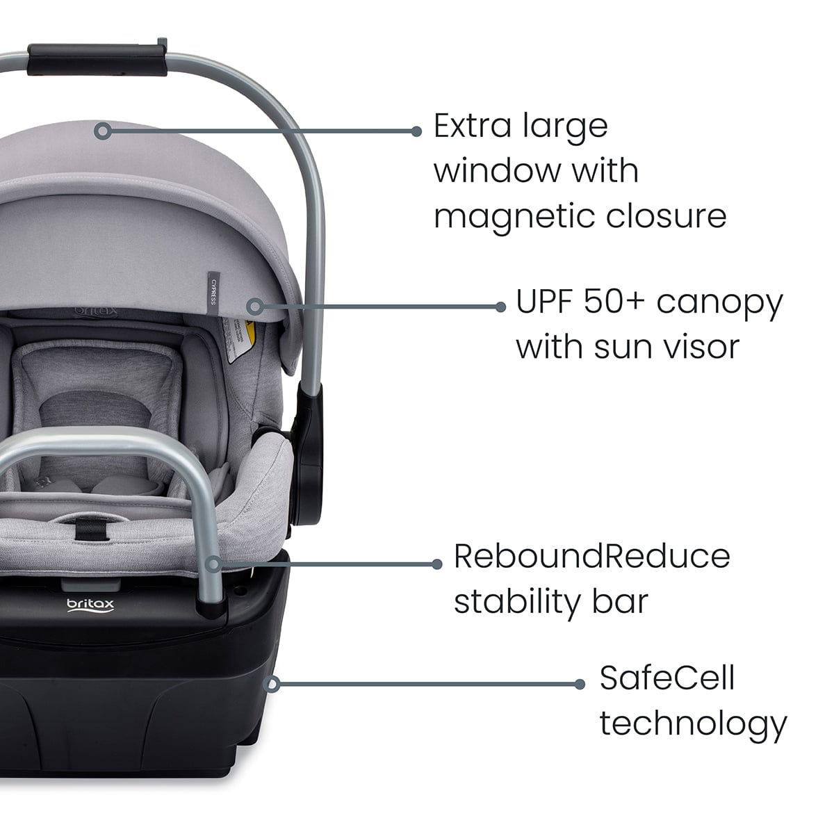 Britax Cypress Infant Car Seat with Alpine Anti-Rebound Base - Ponte Stone