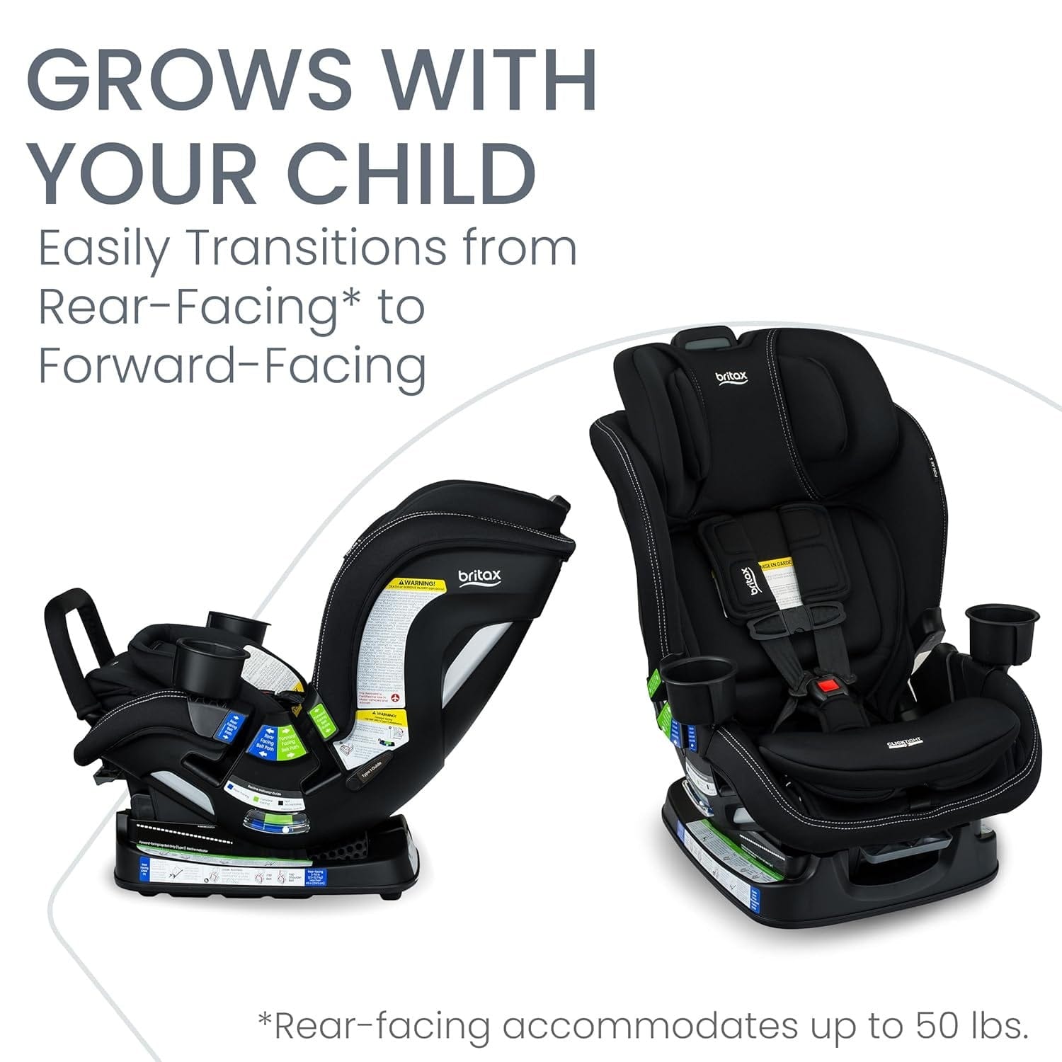This baby car seat lets you easily adjust the 14-position no-rethread harness and headrest to help create the perfect fit. The removable infant insert helps to properly position infants 22 lbs and under. There are 2 additional premium inserts that help create refined comfort and a tailored fit. The ReboundReduce™ stability bar easily attaches to the car seat when installed rear-facing, helping to minimize movement in the event of a crash. Slim outside and spacious inside, this convertible car seat features 17-inch SpaceSaver™ technology designed to fit 3-across* without compromising on trusted Britax® safety and premium comfort. The rear-facing car seat includes a patented SafeCell® crumple zone and a V-shaped top tether to help manage crash energy. Carbon steel frame and belt paths provide strength and stability. The car seat cover fabrics are naturally flame-retardant with no added FR chemicals, and they’re safe to machine wash and dry time and again. *Britax cannot guarantee 3-across installation fitment in all vehicles
