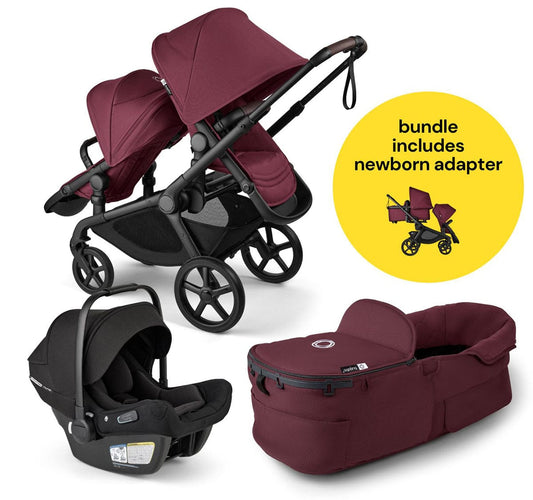 Bugaboo Kangaroo All-Position Newborn Double Stroller Bundle - Black / Dark Cherry / Dark Cherry