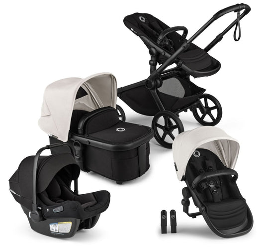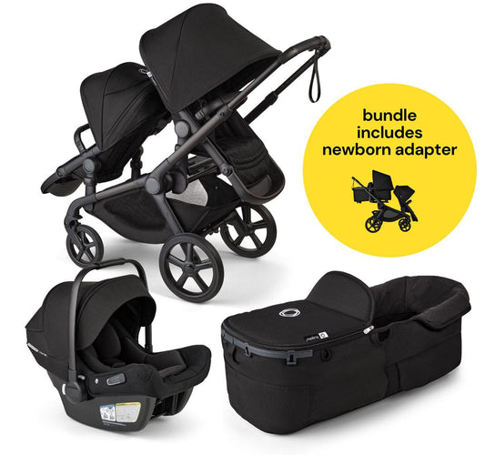 Bugaboo Kangaroo All-Position Newborn Double Stroller Bundle - Black / Midnight Black / Misty White