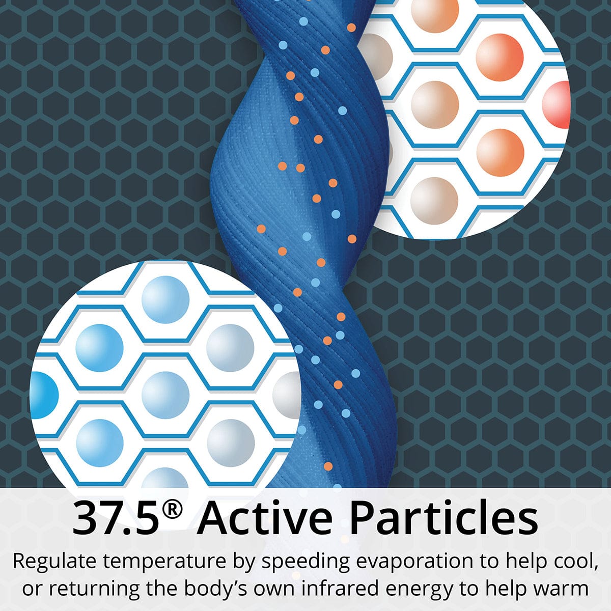 • Naturally derived volcanic mineral particles embedded in the fabric speed evaporation to help cool or return the body’s infrared energy to help warm