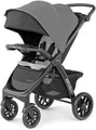 • Large wheels with treaded tires and all-wheel suspension for smooth strolling