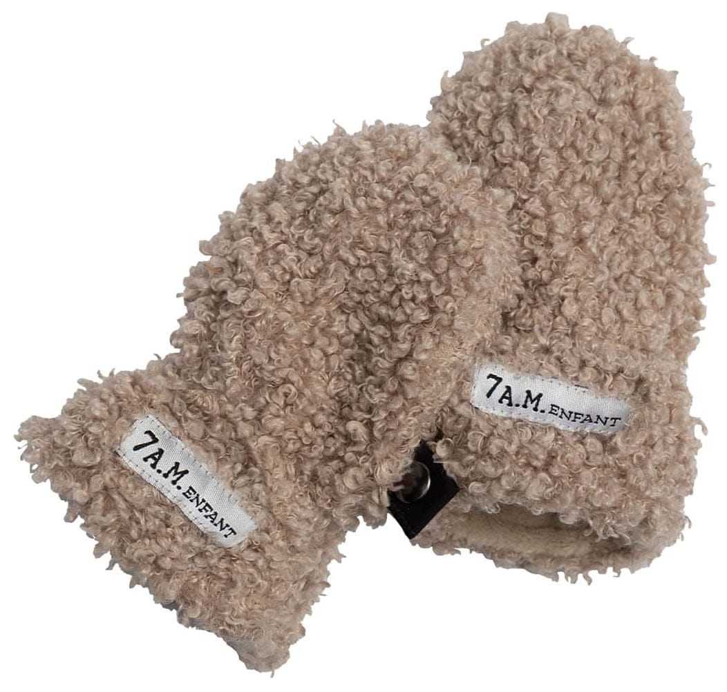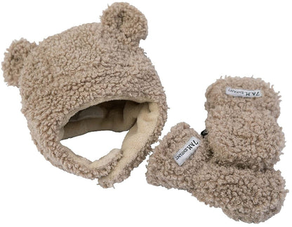 7 A.M. Enfant The Cub Mitten & Hat Set - Teddy - Oatmeal Teddy (6-12m)