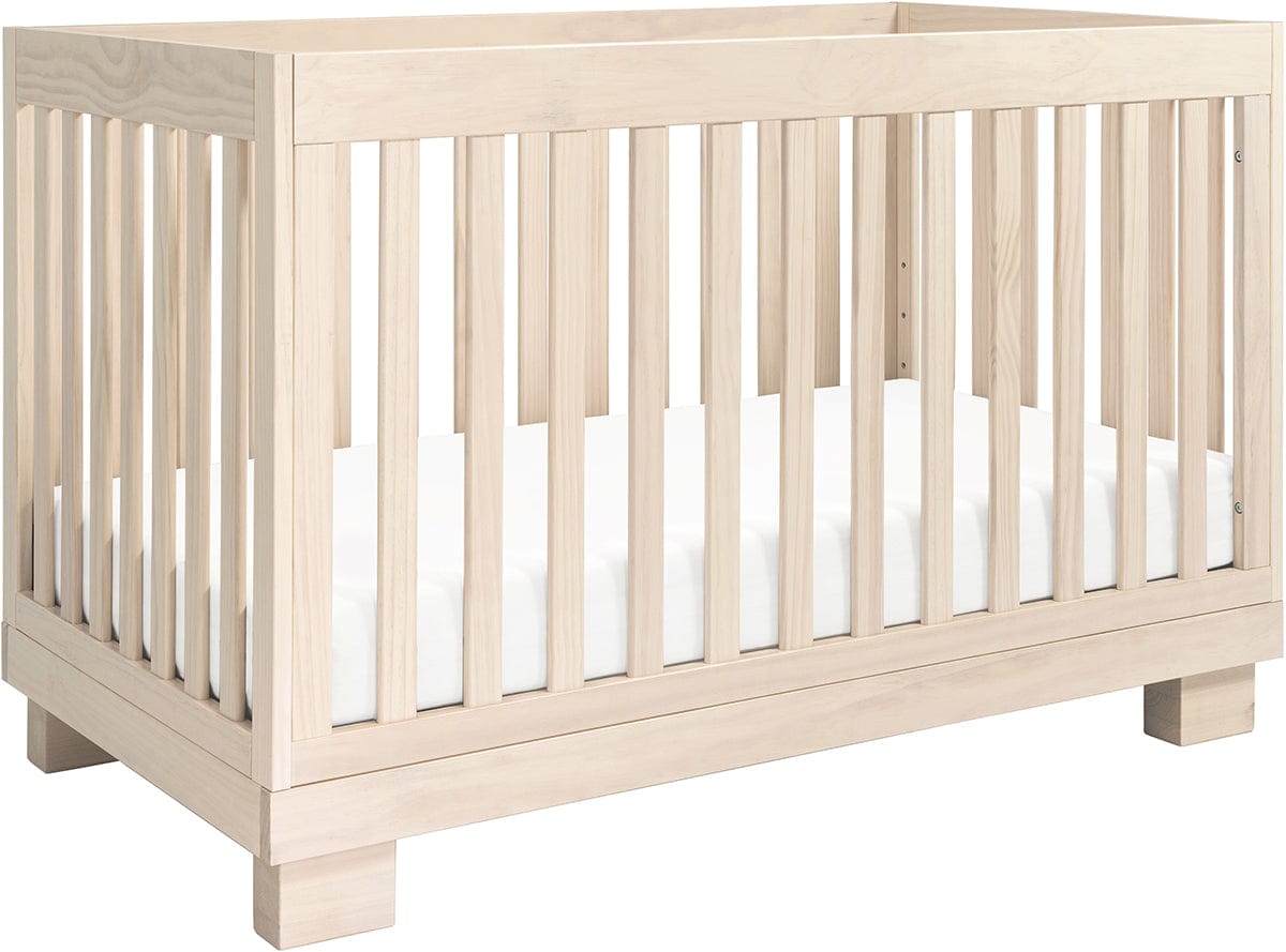 The Modo 3-in-1 Convertible Crib is the epitome of modern simplicity, its sleek, safe, and sophisticated. All-slat sides allow you to keep an eye on babe from every angle and the solid New Zealand pine wood base ensures it's sturdy for your energetic toddler. For your babe's safety, the Modo is screened for harmful chemicals to ensure it meets GREENGUARD GOLD Certification. An included toddler bed conversion kit allows you to seamlessly convert from crib to toddler bed to daybed as your babe grows.