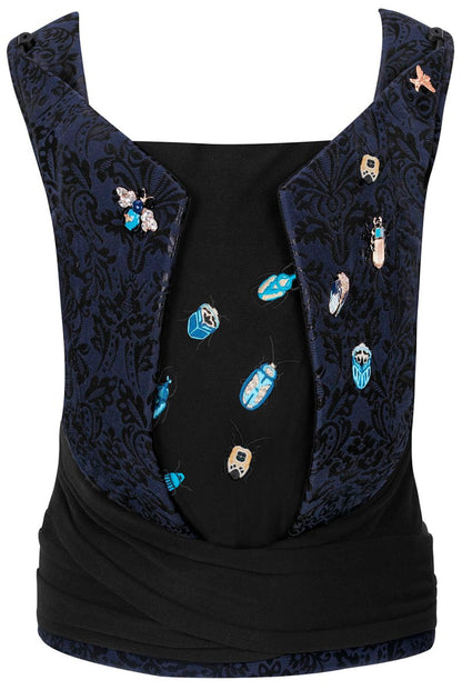 Peek into the mysterious jungle full of hidden secrets and the beauty of nature, led by majestic sparkling beetles. Why beetles? The infinite variety of shapes in the world of beetles and their shimmering exteriors have inspired designers and style icons of many generations, from Cleopatra to Karl Lagerfeld. With Alexander McQueen, butterflies, bees, and beetles conquered the international catwalks. At Chanel’s 2019 Métier d’arts Show, the German fashion designer staged the Egyptian sun beetle in a particularly opulent manner. Every one of them is a masterful detail in the craftsmanship of our strollers. The finest, baroque-style jacquard fabric in the deepest blue color was inspired by a mystical night sky in the Amazon forest. The CYBEX YEMA TIE is a new generation of fashionable baby carriers that features self-adjusting straps, making it easy to use and share between caregivers. It only takes seconds to adjust the carrier to fit waist sizes 26”- 60”. The elastic lining fabric provides optimal support for the baby’s naturally rounded back and hips, and the adjustable seat panel and headrest allow the carrier to grow with your child. All of these features help promote the natural spread-squat position recommended by medical professionals, combining ergonomics and comfort with quality you can count on.