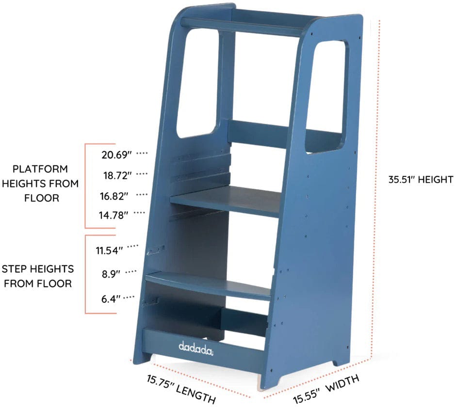 With easy-to-adjust steps to reach a variety of heights, baby-safe finishes, and a collection of playful, adorable colors, the Toddler Tower is a must-have for baby’s next exploratory phase.