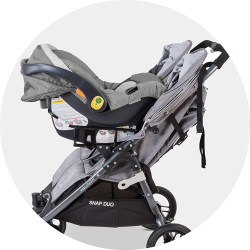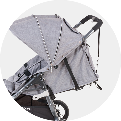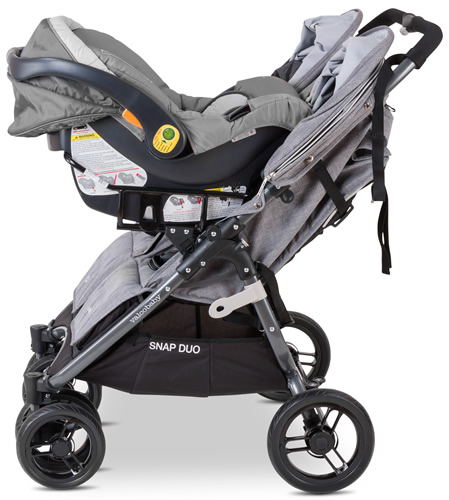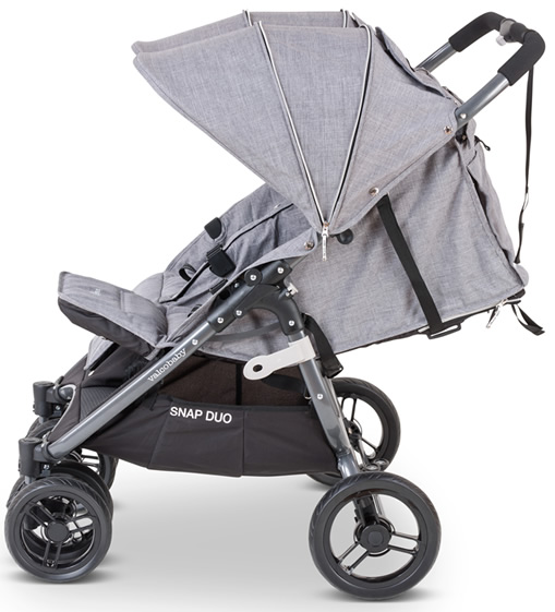 The Valco Snap Duo Tailor Made Double stroller establishes a new level of style in addition to function for parents of multiple children. Available in Grey Marle and Denim Blue, the Snap Duo Tailor Made not only makes a fashion statement, but incorporates great features such as an ultra-lightweight frame, individual extendable canopies, adjustable footrests, roomy comfortable seats & a one handed clean fold?. Suitable for infants through 45 lbs. Weighing in at under 24 lbs, the Snap Duo is not just the ultimate in stroller convenience but will also get you to your destination in style!
