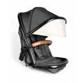Stroller frame, toddler seat and second seat, set of infant car seat adapters, extra-large expandable canopy, Vegan leather bumper bar and handlebar
