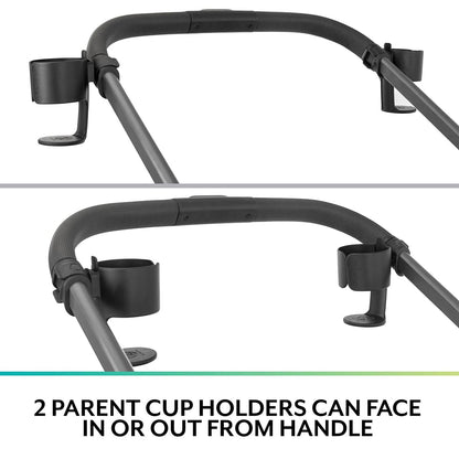 • ADVENTURE WITH ALL THE COMFORTS: Comes with 2 parent cup holders that can face in or out from the handle, a BPA-free child snack tray and a large storage basket