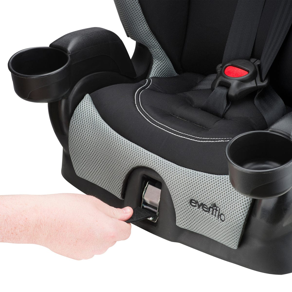 The Evenflo® Chase® Harnessed Booster features an innovative headrest design that allows the vehicle belt to self-adjust to your child’s height while in booster mode. Enhanced side walls and head support provide comfort and safety for the child. Sporty style elements appeal to children, as will the integrated cup holders with flexible stripe design. The seat accommodates children ranging from 22-110 lbs. This combination booster provides an exceptional value for a seat with such a wide array of innovative features.
