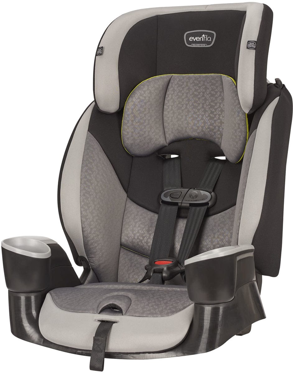 The Even?o® Maestro™ Sport Booster Seat offers two modes of forward-facing use for your growing child. Accommodating children 22-110 lbs., stage one has a 5-point harness for children at least 2 years old up to 50 lbs., and stage two allows you to use the vehicle belt as a high back booster for children at least 4 years old. The up-front harness adjustment is centralized, making it easy to properly tighten the harness. As your child grows, the shoulder belt guide assists in positioning the vehicle's belt across their shoulder to provide optimal safety. Children appreciate the dual integrated cup holders to keep their snacks and drinks secure. The removable, machine-washable seat pad allows for easy cleanup of any messes. The Maestro Sport is designed, engineered, tested and assembled in the United States.