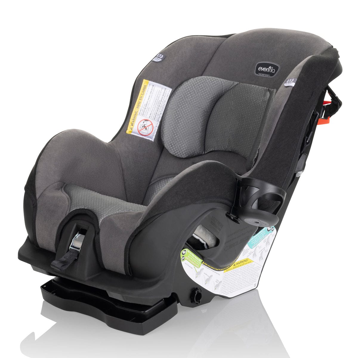 If you’re looking for a savvy car seat investment, take a closer look at the car seat reviewers across the internet agree is an amazing value: The Even?o® Tribute™ LX Convertible Car Seat. Budget-friendly, the Tribute LX checks off your essential must-haves, from stringent safety standards and child comfort to ease of use. But that’s just the beginning. This dependable convertible features a compact design ideally suited to smaller vehicles and backseats that need to fit multiple car seats comfortably — owners frequently report they can fit 3-across, although that is dependent on vehicle type. Will you be traveling? Weighing just 9.4 lb, the Tribute LX is the lightweight choice for families who fly frequently or need to switch between vehicles often. Designed for children weighing 5 to 40 lb, measuring 19 to 40 in. tall, this reliable convertible takes you from rear-facing to forward-facing modes with a 5-point harness and adjustable, 4-position shoulder harness. You might not expect a no-nonsense convertible car seat to come with conveniences, but think again! The up-front harness adjust makes it easy to maintain a secure fit as your child grows. As your baby grows, the plush head pillow adds comfort and support for proper head positioning — and it’s removable when your child outgrows it. To keep snacks and drinks within reach on the go, the Tribute LX includes a removable cup holder that’s dishwasher-safe for easy cleaning. And because messes happen, the durable, stain-resistant polyester fabrics are removable for tossing into your washer. Discover for yourself why so many families trust the Tribute LX as their first car seat and even their second car seat for grandparents, babysitters and caregivers.