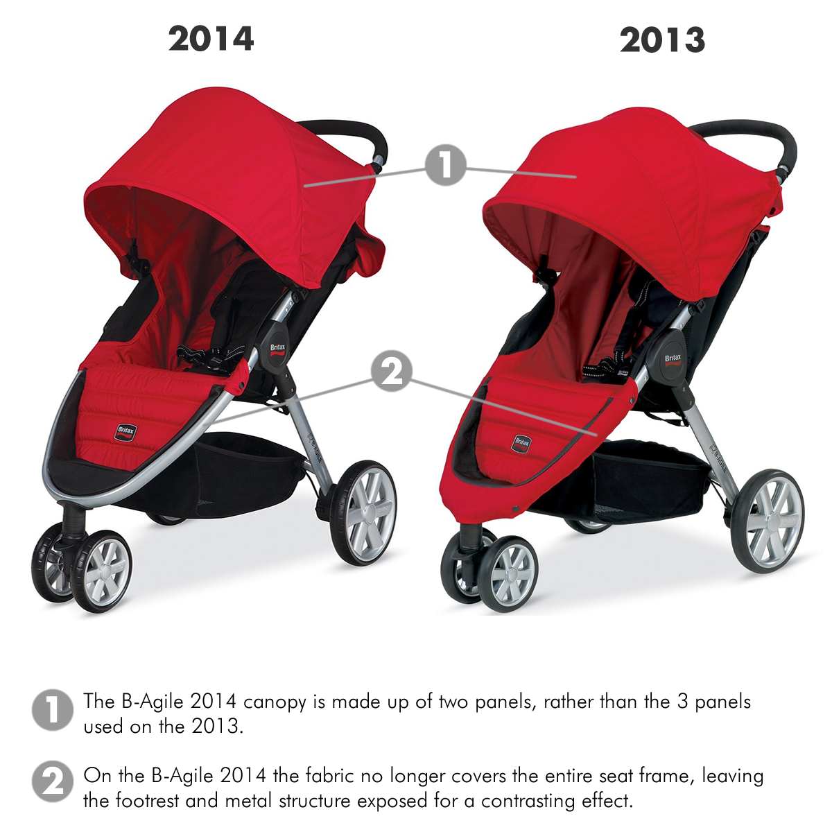 The B-AGILE Double stroller incorporates the same quick-fold design and great maneuverability of the single B-AGILE stroller, but with capacity for two children. With a lightweight frame, height adjustable handle and the ability to fit through standard doors, it is perfect for all occasions. Equipped with the BRITAX CLICK & GO system, the B-AGILE Double stroller accepts one BRITAX Infant Car Seat with the included infant car seat receivers. Caregivers will further appreciate the access to under-seat basket through the front leg rest, automatic chassis lock and two convenient zippered back-of-seat pockets. The padded, supportive seats feature a 5-point harness system with head pad that is adjustable without having to rethread or unhook any straps. The infinite seat recline allows the B-AGILE Double to be used from birth and has a weight capacity of 50 pounds for each seat. Extra large canopies with mesh ventilation windows allow you to see your children, while the all-wheel suspension ensures a smooth ride, and a single step locks both rear wheels simultaneously.