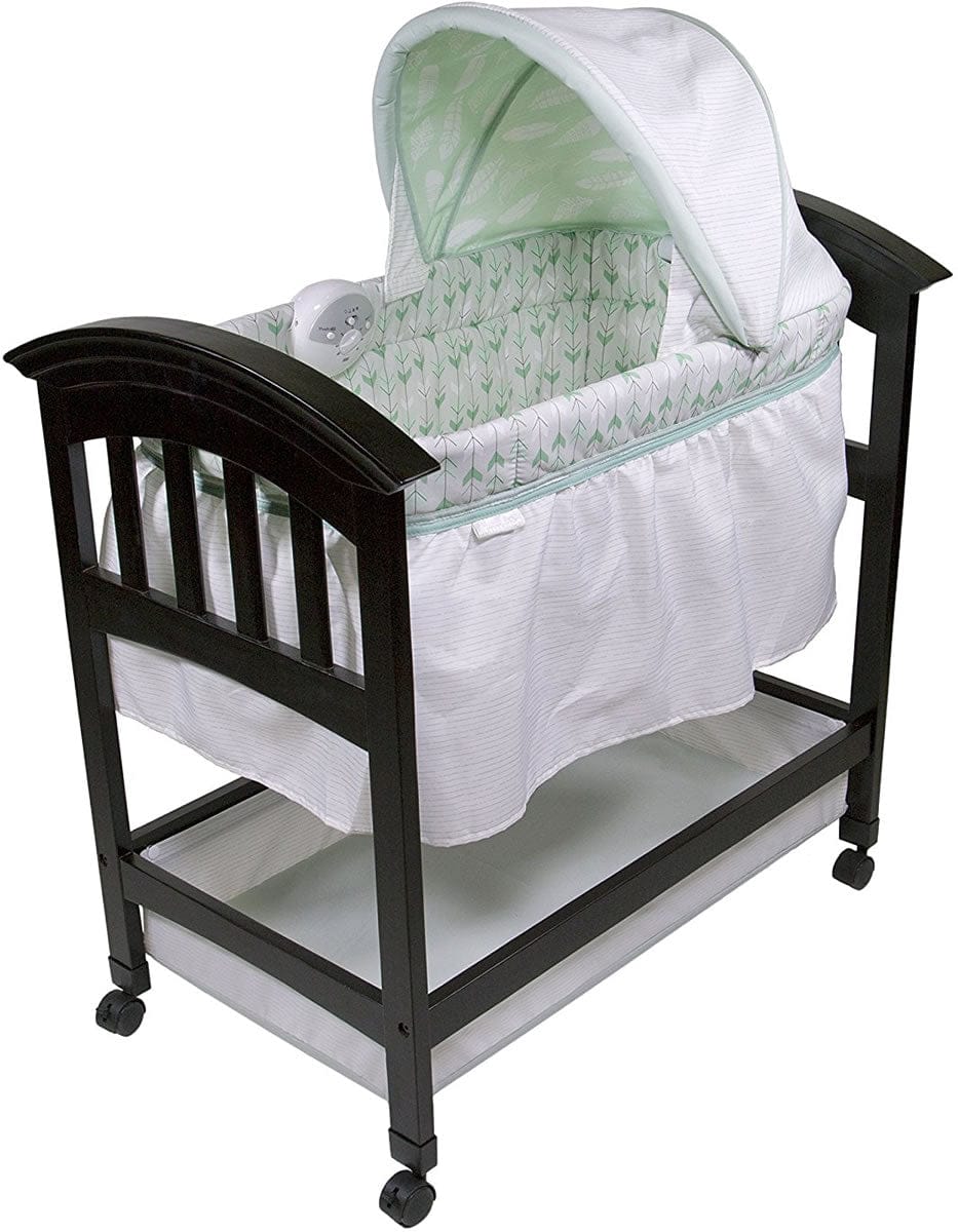 Summer Infant's Classic Comfort Wood Bassinet helps your little dreamer sleep with calming vibrations and melodies. A storage basket at the bottom keeps all the newborn essentials conveniently located for those middle of the night diaper changes.