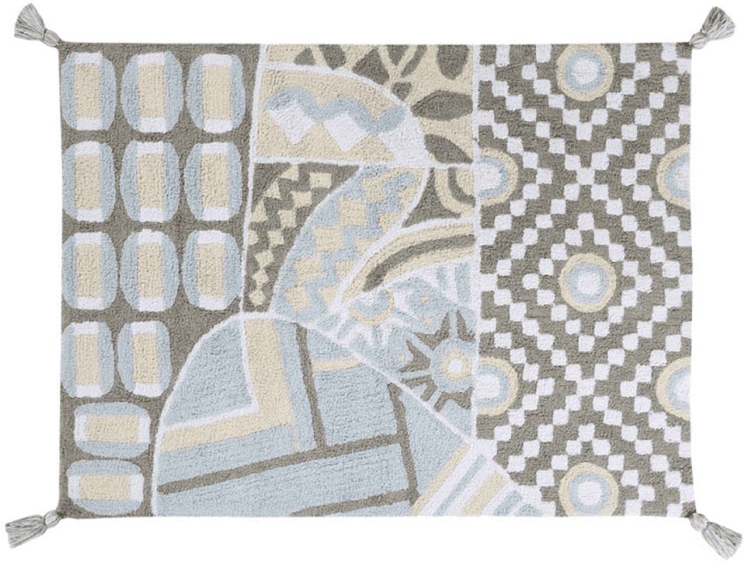 Lorena Canals Indian Bag - Grey/Blue (4' x 5' 3")