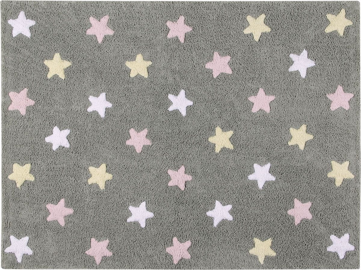 Lorena Canals Tricolor Stars Rug - Grey/Pink (4' x 5' 3")