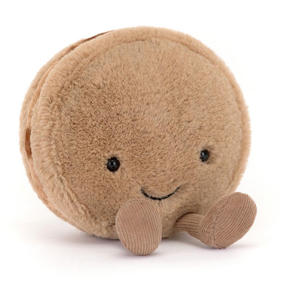 Amuseables Mona Macaron is deliciously soft in chocolate fur. With cordy cocoa feet, and a velvety filling, Mona has an embroidered Jellycat logo on the back for a truly luxurious treat!