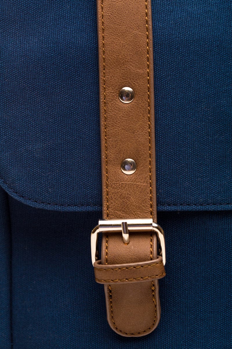 - Durable cotton canvas with vegan leather