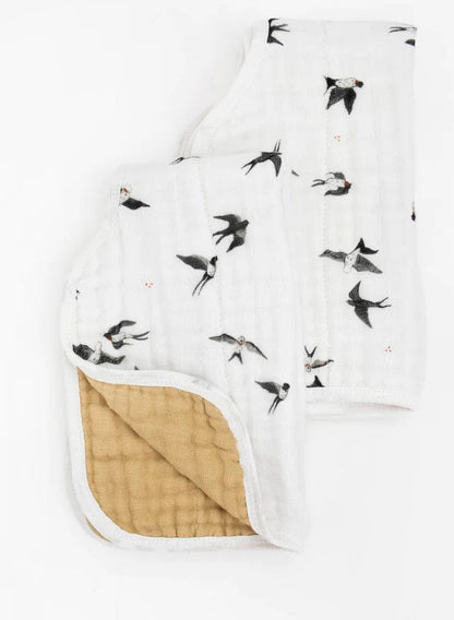 Little Unicorn Organic Cotton Muslin Burp Cloth, 2 Pack - Swallows + Wheat