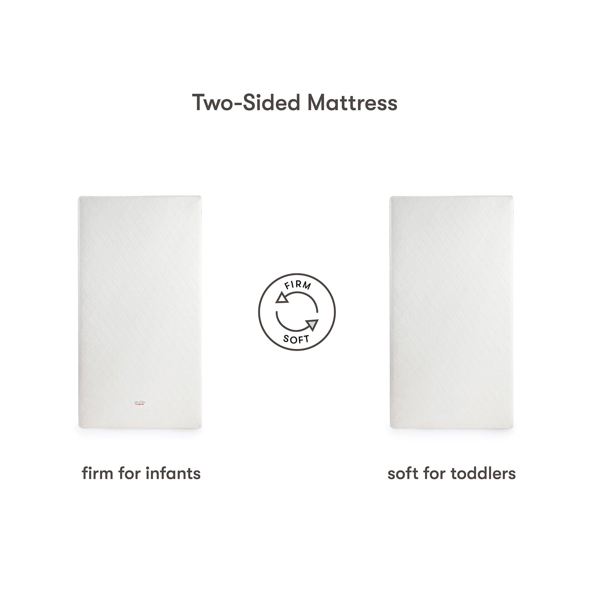 • 2-STAGE & LIGHTWEIGHT: This is a 2-stage dual-sided mattress with a firm supportive side for infants and can be flipped to a softer side for toddlers