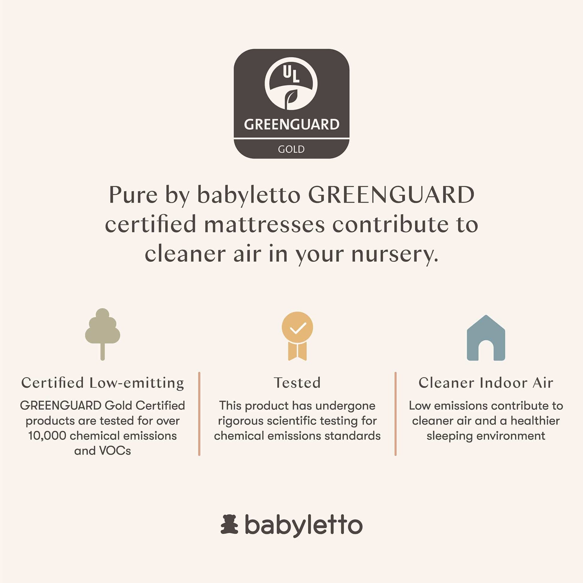 • GREENGUARD GOLD CERTIFIED: This mattress has been tested for over 10,000 chemical emissions and VOCs, undergoing rigorous scientific testing to meet some of the world's most stringent chemical emissions requirements. It contributes to cleaner indoor air, creating a healthier environment for your baby to sleep, play, and grow
