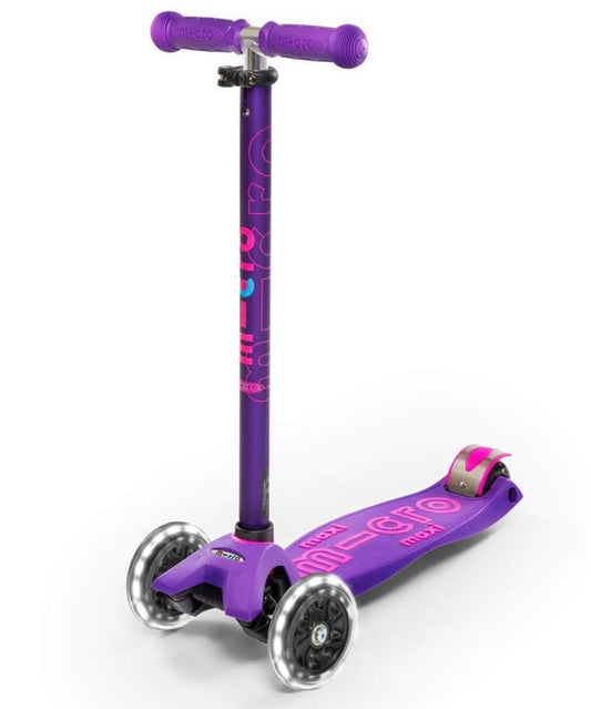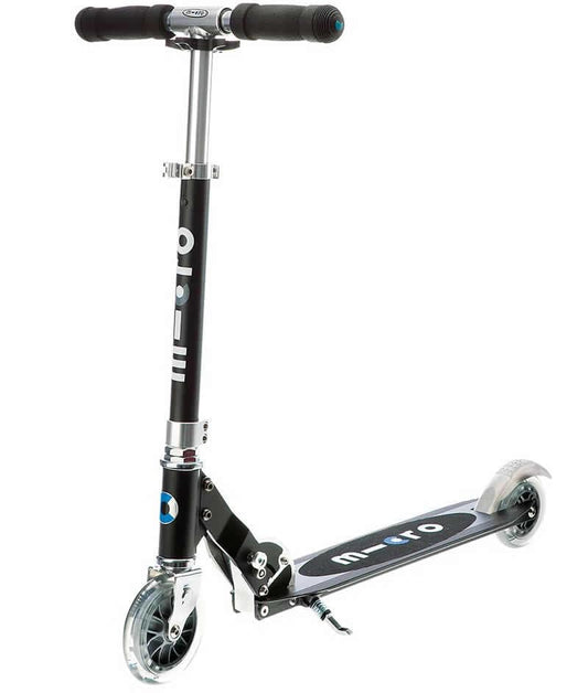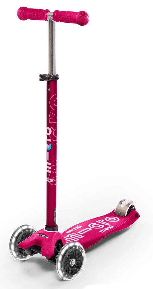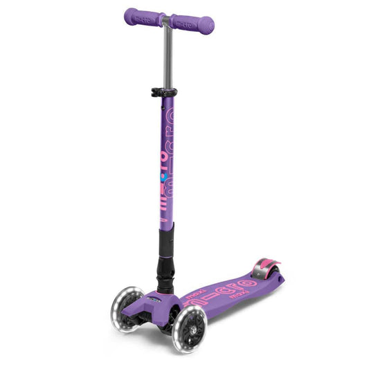 Why We Love It: The Maxi Deluxe Foldable LED takes the adored Maxi platform and adds a quick fold—useful for car trunks, classroom parking, or apartment hallways. The anodized stem resists scuffs, the silicone-injected deck improves traction, and the adjustable T-bar extends the usable life across growth spurts. Underneath, PU wheels and quality bearings keep the glide quiet and efficient, while Micro’s lean-to-steer geometry maintains the intuitive, carve-like feel kids love.