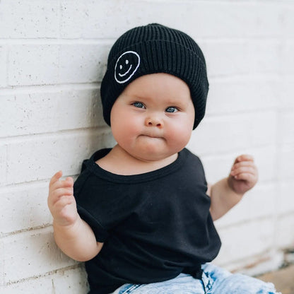 millie+roo Smile Rib Knit Beanie - Black (0-1Y)