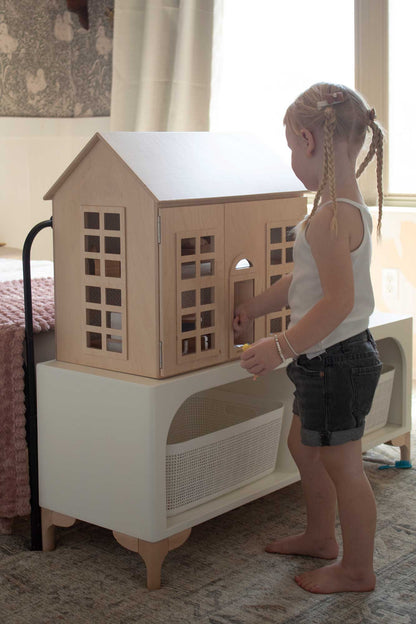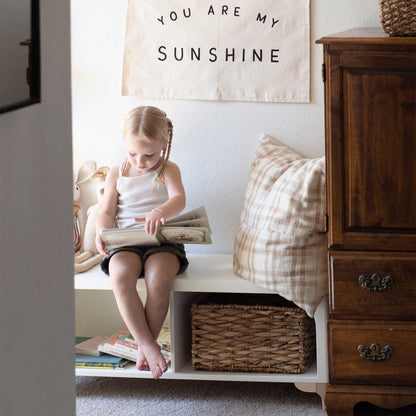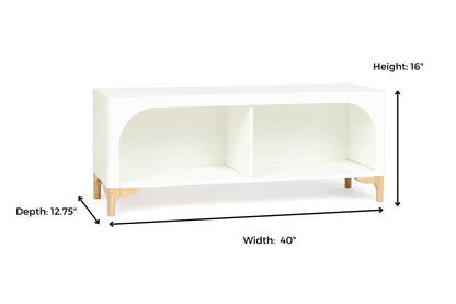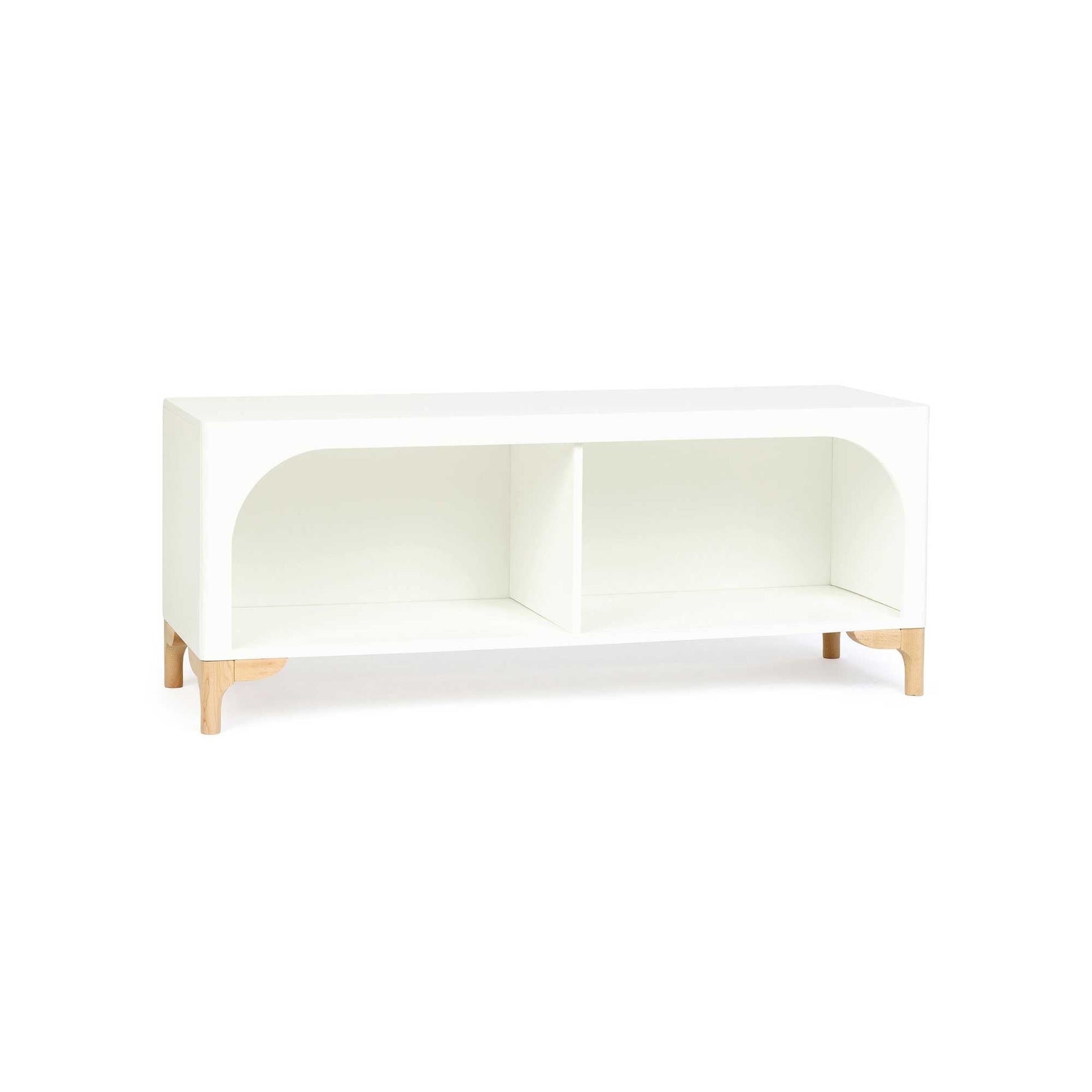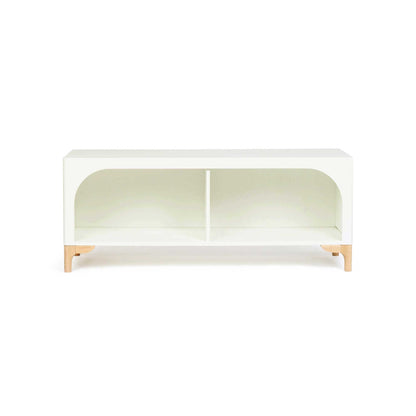 Charming and functional, this bench offers a clever storage solution wrapped in playful design. Featuring a graceful arch on the front, the two storage compartments are perfect for keeping toys, books, and shoes neatly organized. Made from high-quality Baltic birch and standing on sturdy solid maple legs, this bench is built to withstand years of use. Whether placed in an entryway, playroom, or bedroom, its versatile design adds a touch of elegance while keeping clutter at bay, making it the perfect blend of form and function.