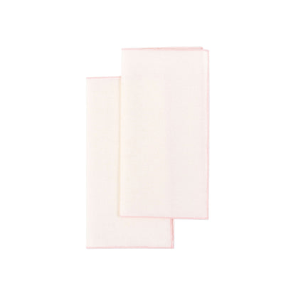 Each set features 2 matching cloth napkins. Available in with Cream or Pink stitching.