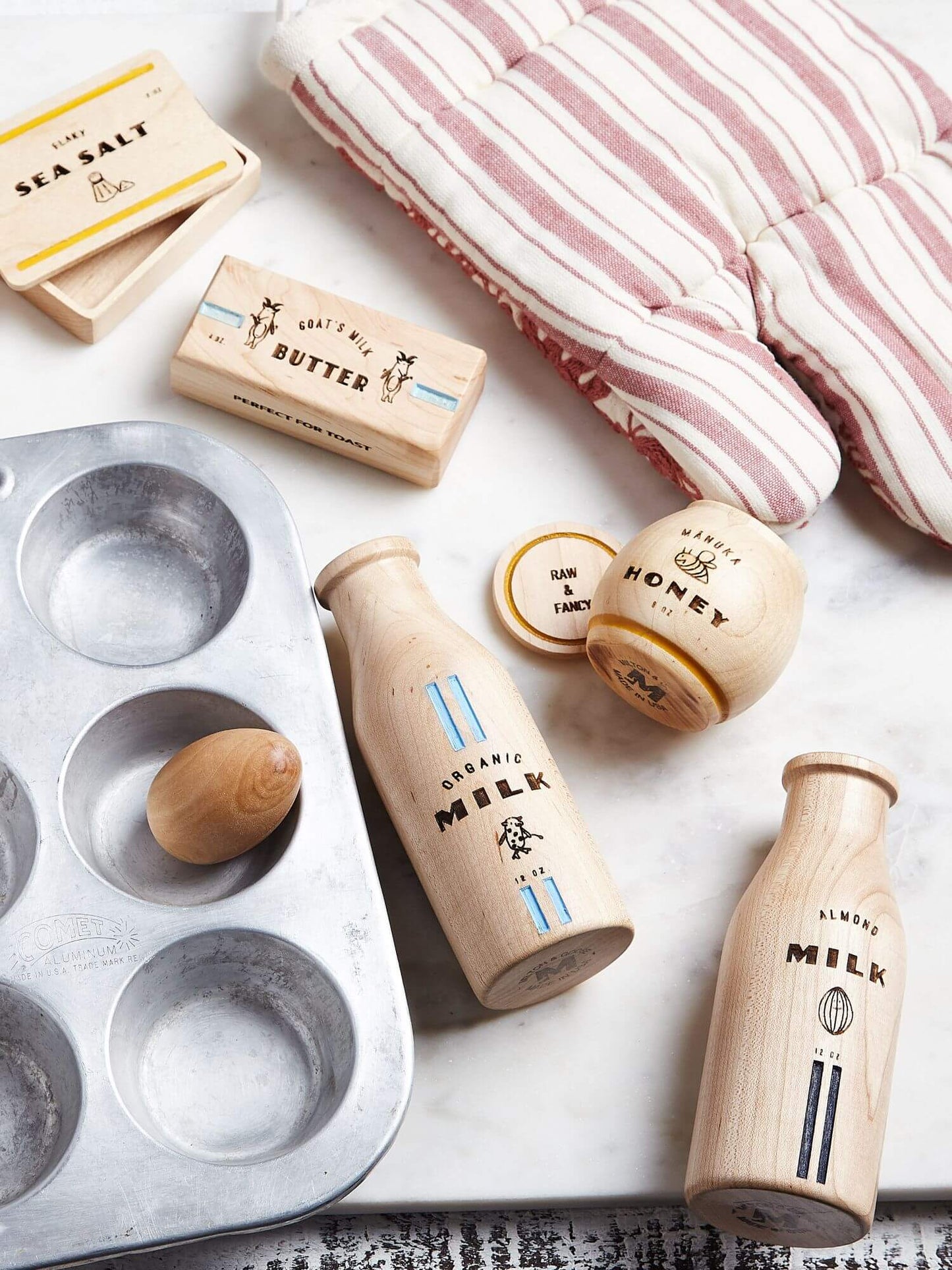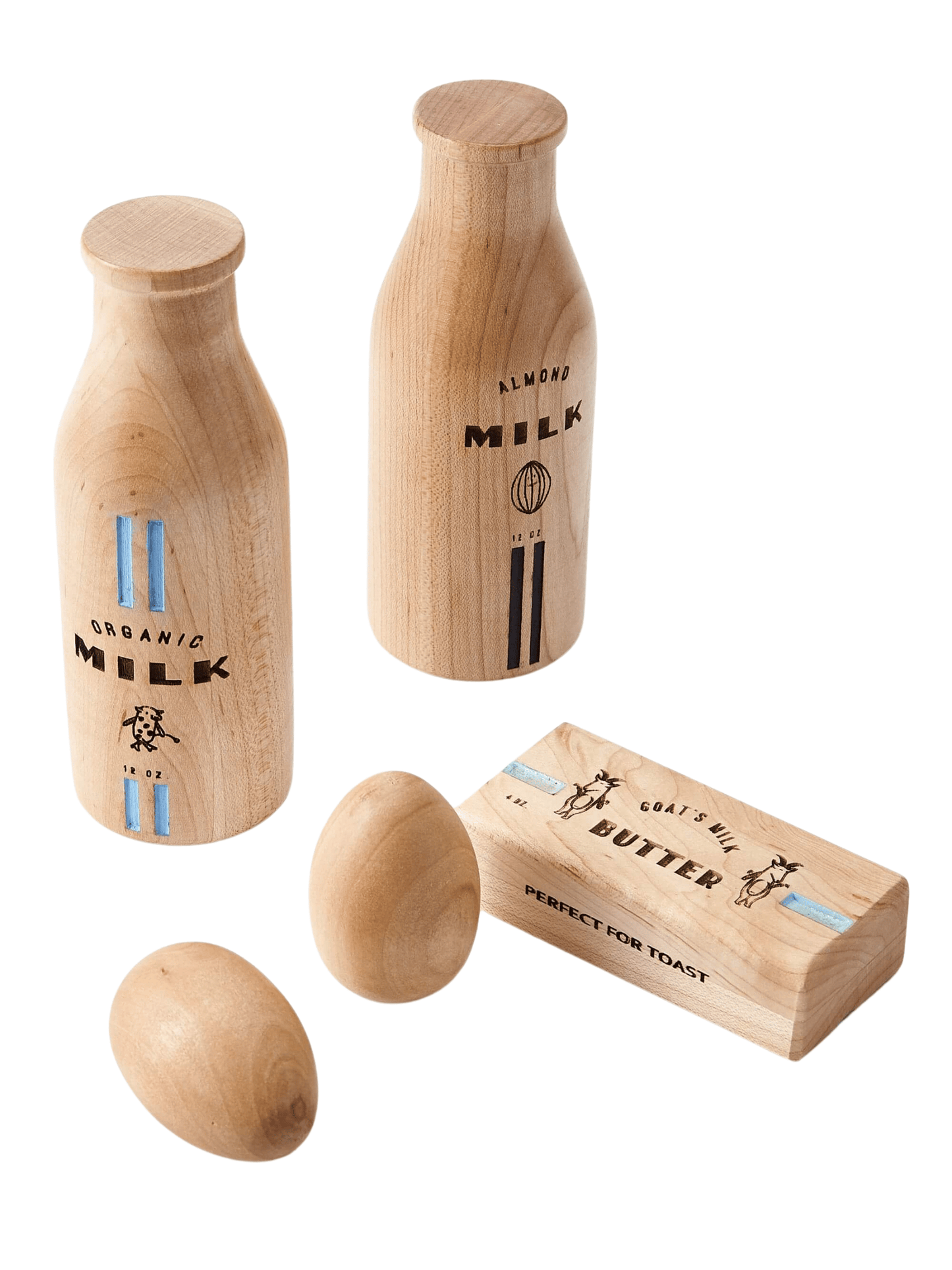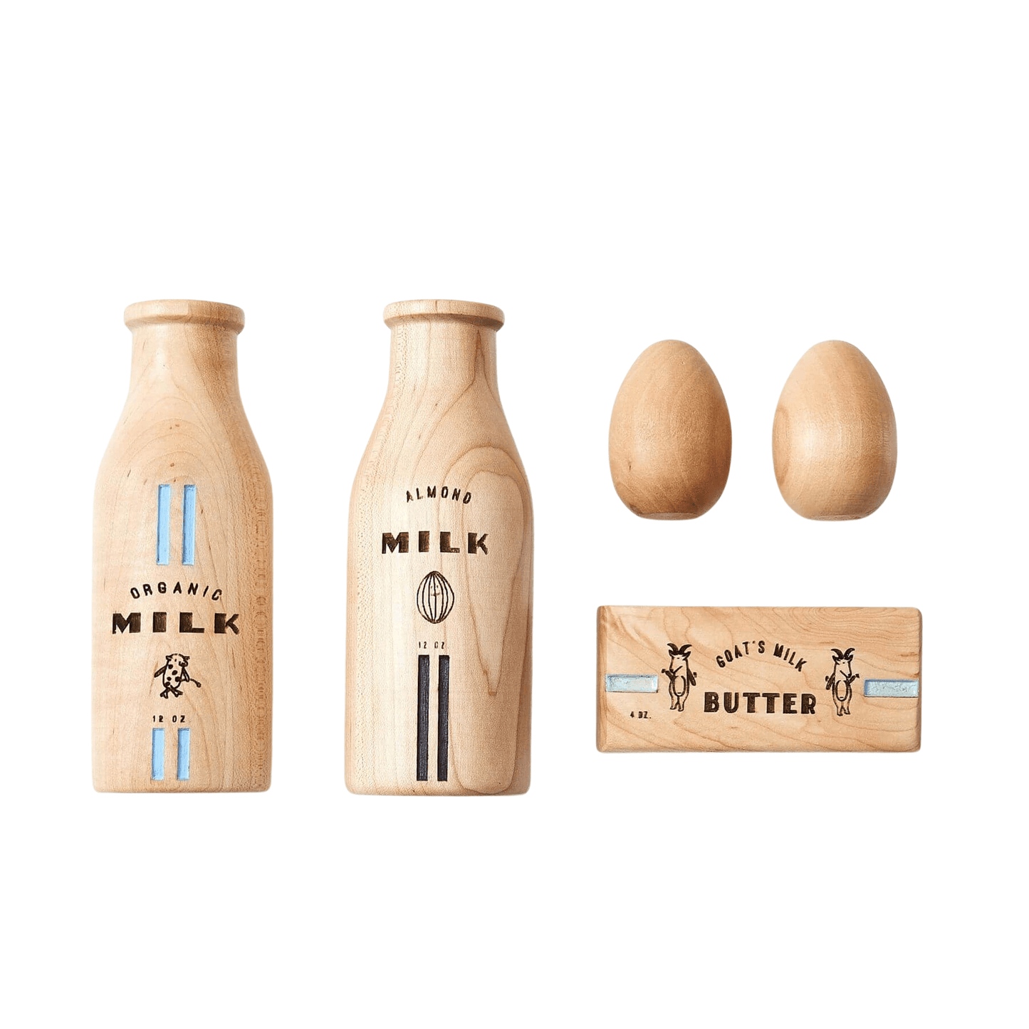 Refrigerator staples that are so cute you might just want to leave them out! Each set includes Organic Milk, Almond Milk, Goat's Milk Butter, and 2 Free-Range Eggs.