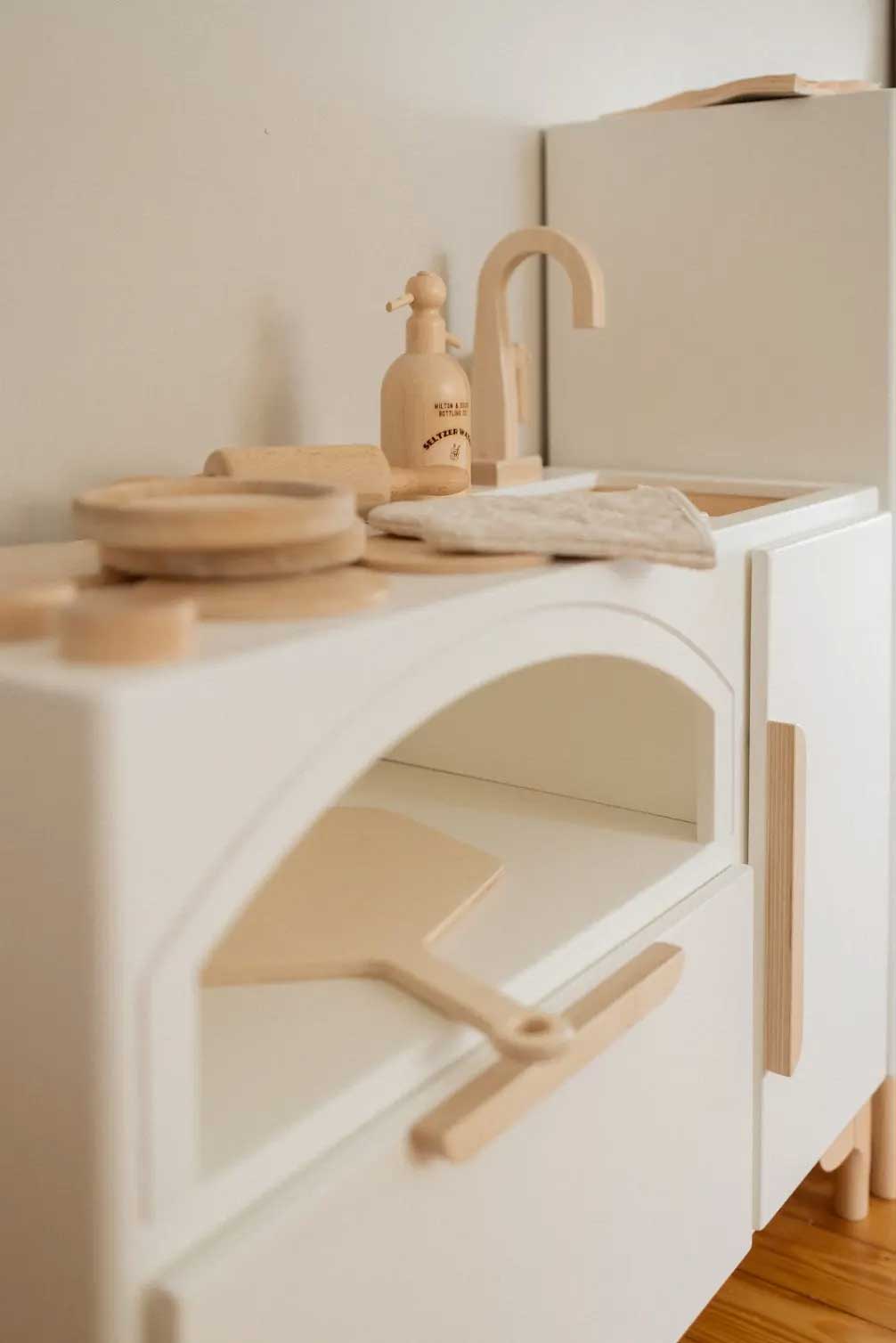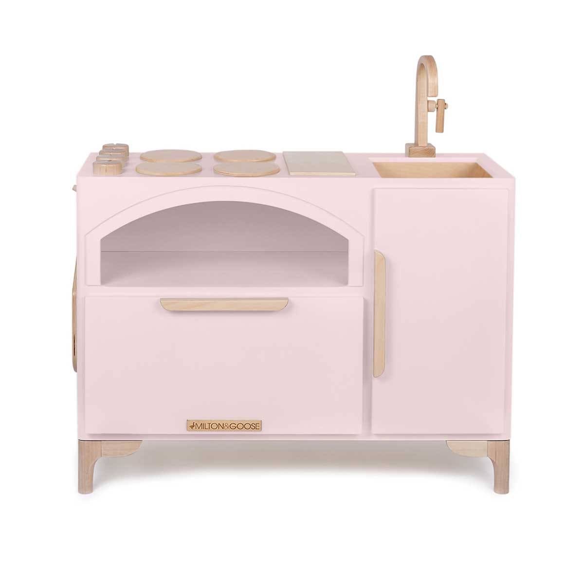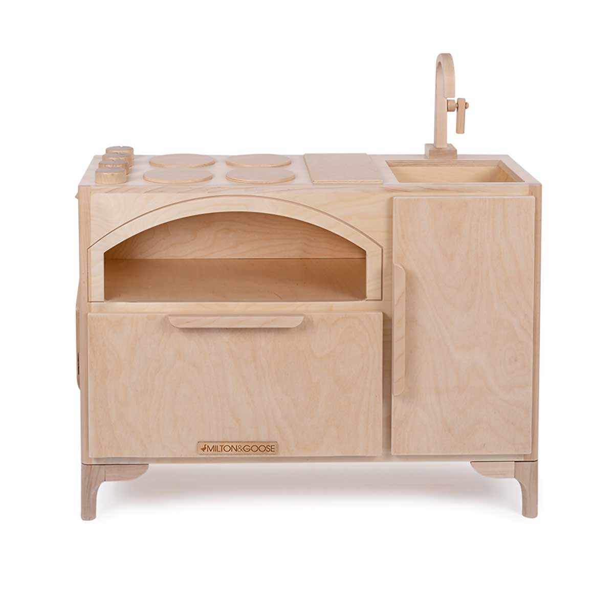 Crafted from sustainable wood and finished with non-toxic paints and stains, the Milton & Goose Luca Play Kitchen prioritizes safety and durability. The sturdy construction ensures long-lasting play and allows multiple children to enjoy cooking adventures together.