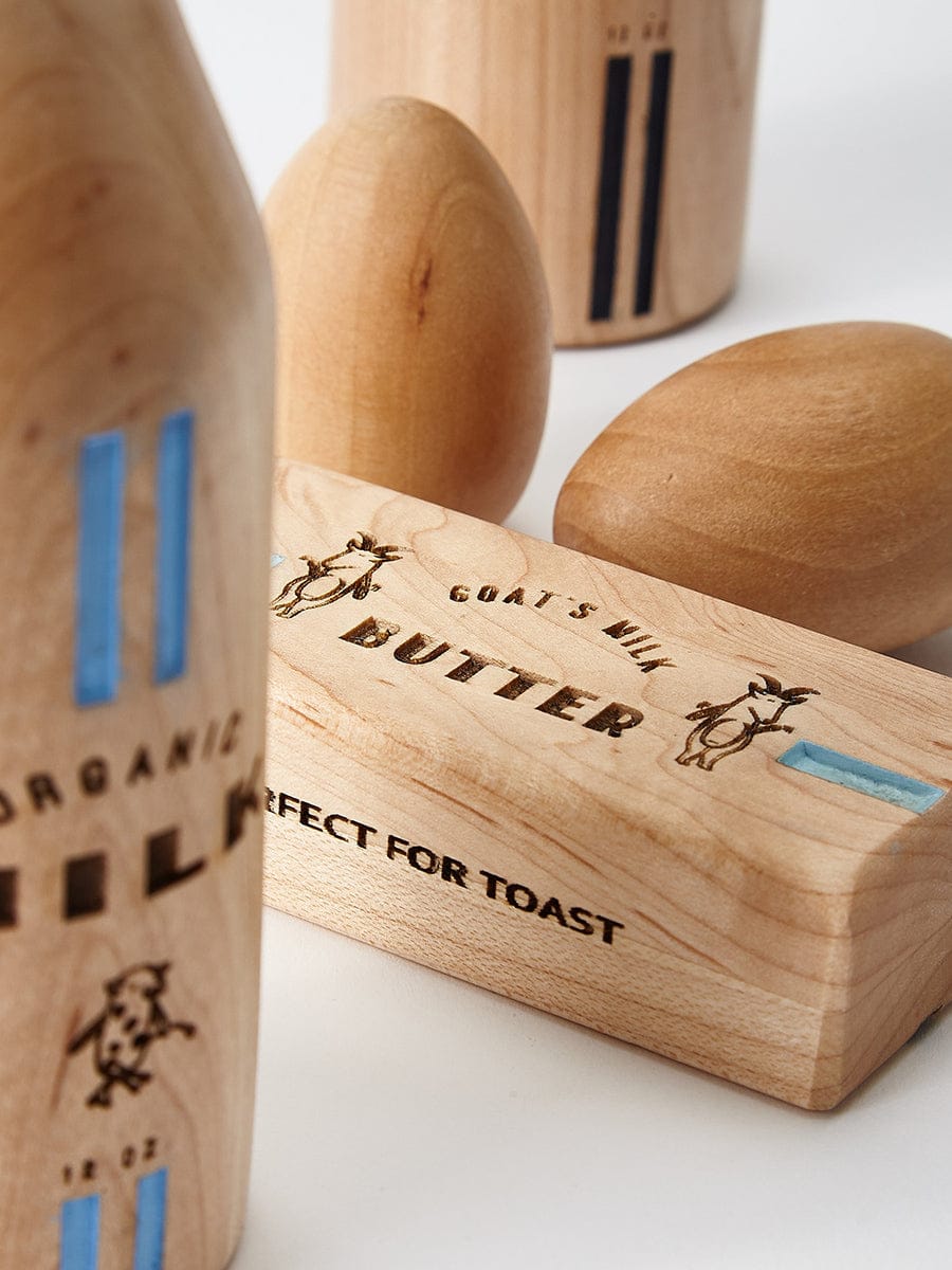 Refrigerator staples that are so cute you might just want to leave them out! Each set includes Organic Milk, Almond Milk, Goat's Milk Butter, and 2 Free-Range Eggs and comes in a beautiful cotton drawstring bag.