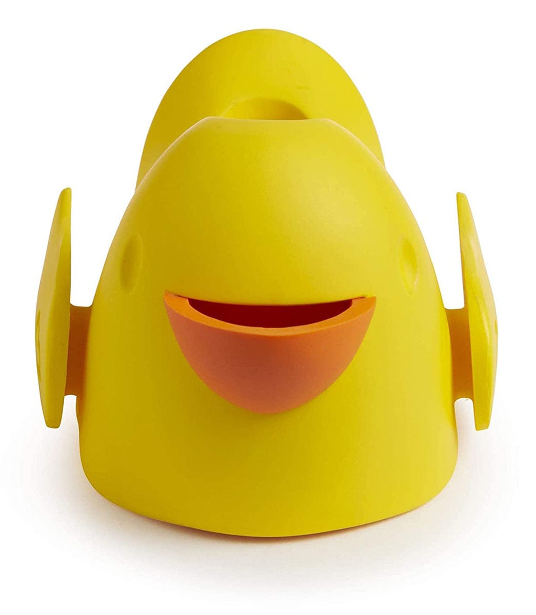 - Duck-shaped spout guard covers faucet to help prevent bumps and burns