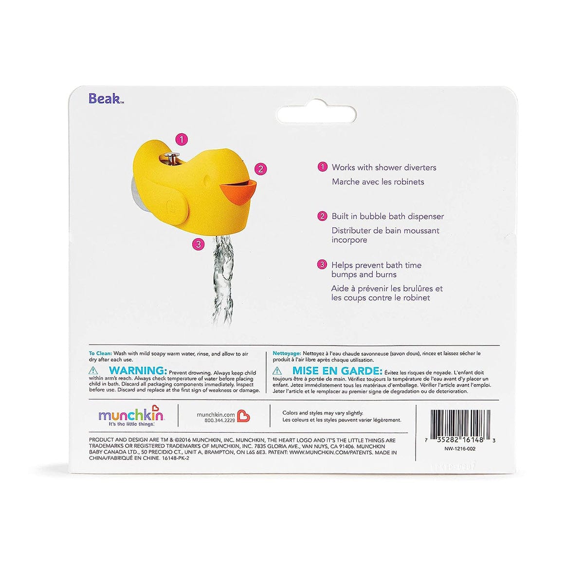 "Ouchie!" is every parent’s least favorite word when bathing their child. Protect your little one from bath time bumps and burns with this snug-fitting spout guard. With an adjustable strap, this spout guard fits to most faucets and protects your little one’s head from bumps or burns. And when you need to turn the showerhead on, you don’t have to remove Beak™. The open-top design gives you access to the diverter at all times. There’s even a bubble bath dispenser for sudsy fun. So if you want to ensure your little one’s safety and let the good times flow, Beak™ is sure to fit the bill!