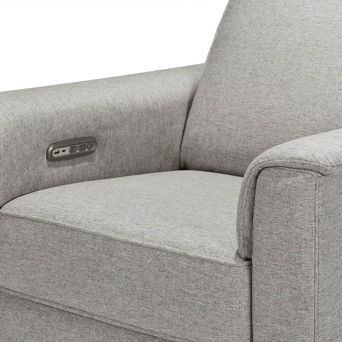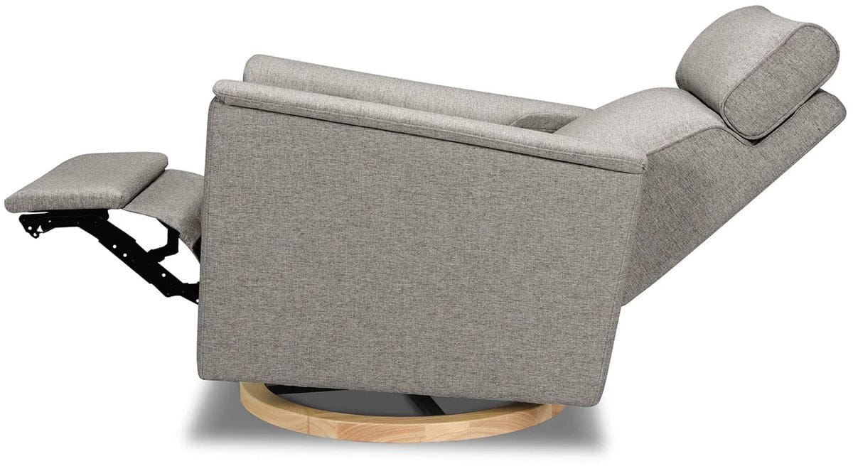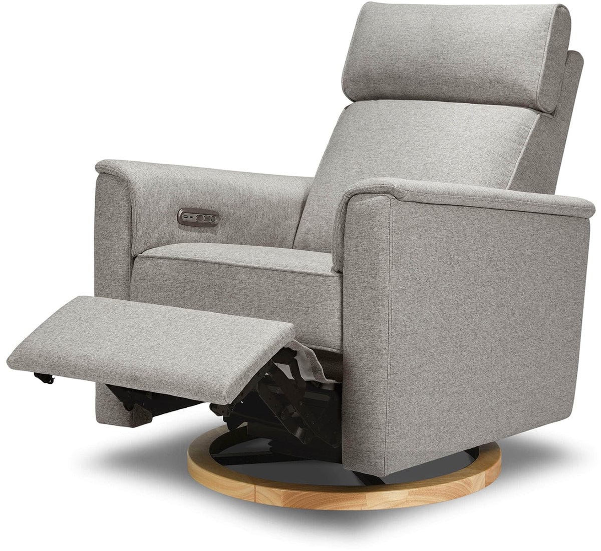 Monogram by Namesake Willa Plus Electric Glider Recliner w/ Electric Headrest - Performance Grey Eco-Weave w/Light Wood Base