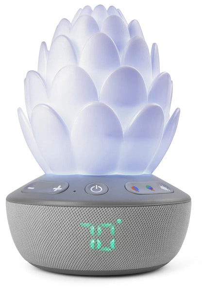 Comforting baby comes naturally with our décor-friendly botanical soother. Designed to automatically respond to baby's cries, it features eight soothing melodies and sounds plus a voice recorder for customized comfort. Even better? It’s also a nightlight with seven different colors plus a multi-light show mode for a calming animated glow. We even included a thermometer so you’ll always know if baby’s room is a comfy temperature.