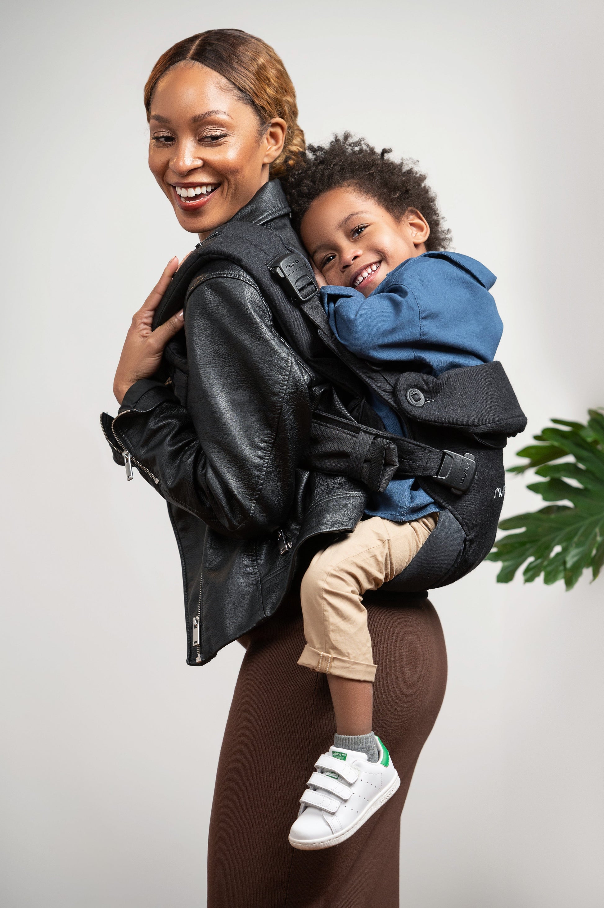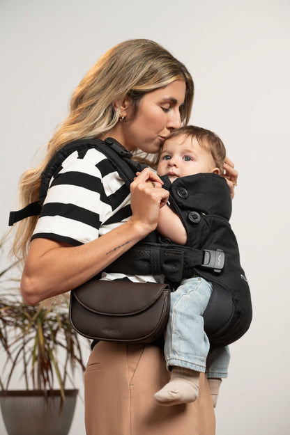 - Structured ergonomic design that ensures comfort for both wearer and baby in a stylish aesthetic that becomes a functional and fashionable accessory