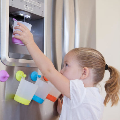 Phillup is a 2 part system: A kid friendly drinking cup and a grippy hook